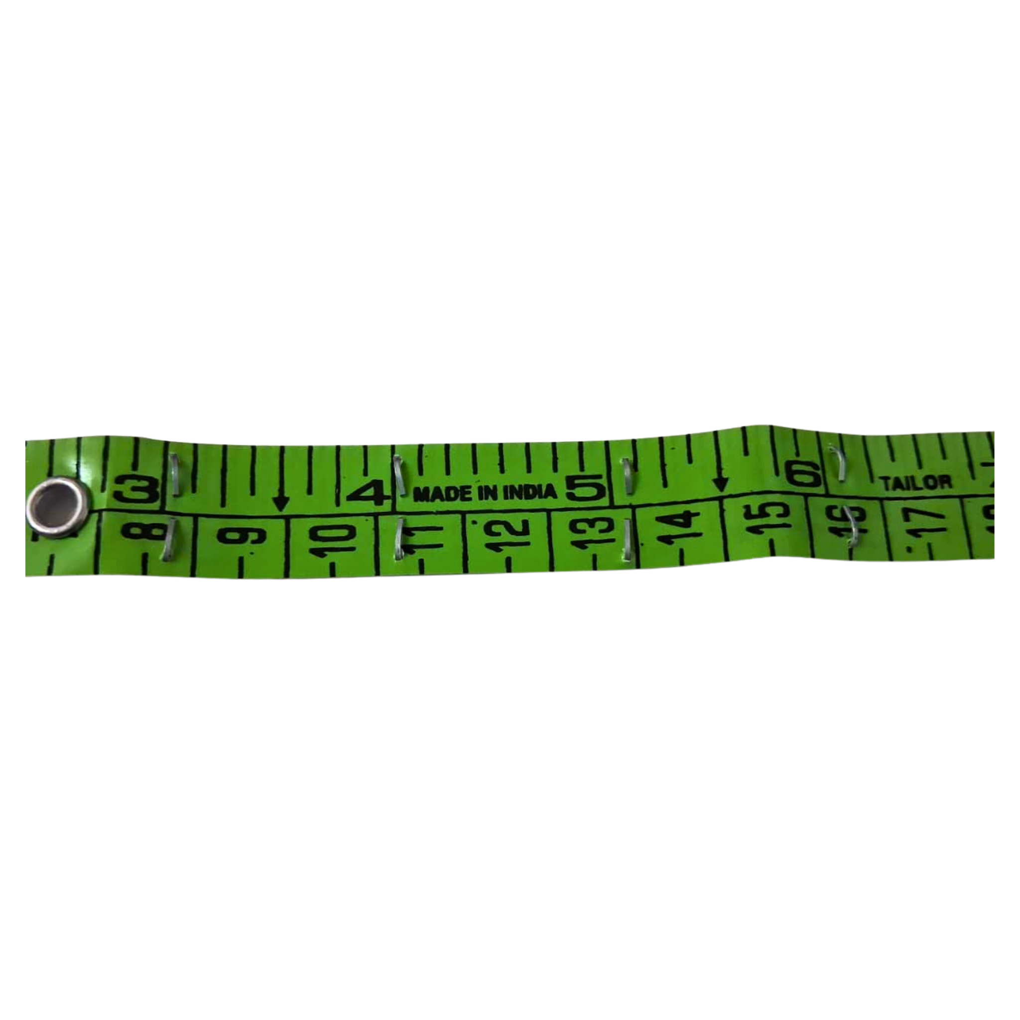 The tape features tactile markings, with a stapled point at every inch. Users can either read the measurements in print or feel the tactile markings. Once the object is aligned, the user simply counts the number of staple points to determine the measurement.