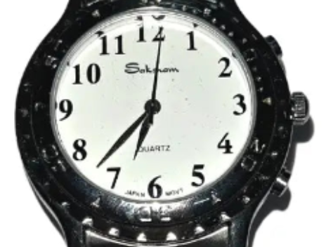 चांदी के डायल वाली एक चिकनी चमड़े की पट्टी वाली घड़ी, कम दृष्टि वाले व्यक्तियों के लिए उपयुक्त है। उपयोगकर्ता बड़े प्रिंट नंबरों को देखकर समय पढ़ सकते हैं।